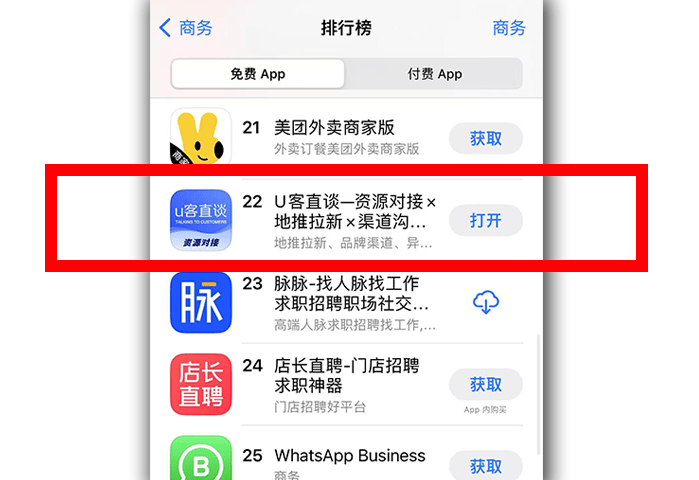 必集客排名第22位,其前方为世界500强企业推出的“美团外卖商家版”,后方则是高端人脉平台“脉脉”。