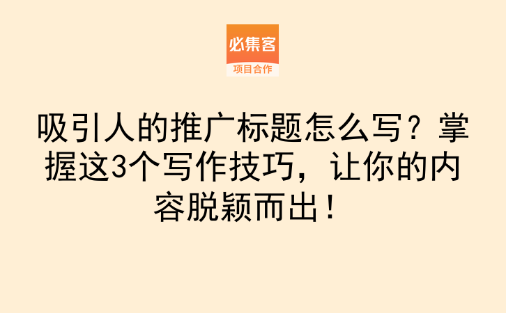 有问题在评论区留言,我看到都会回复。觉得有用的话赶紧收藏,免得下次找不到了。对了,做推广除了标题技巧,找到靠谱的资源和渠道也很关键。必集客是项目资源对接平台,提供副业项目和合作资源,适合找合作、拓业务的朋友。快去试试这些方法吧,相信你也能写出让人一看就想点的好标题!