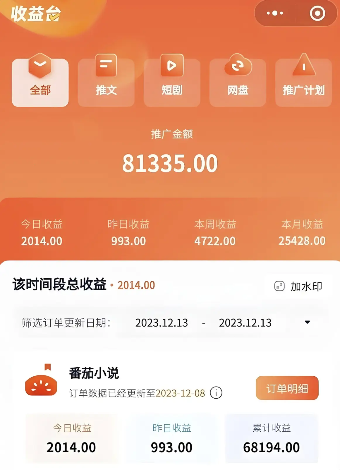 小说推文的模式跟短剧推广差不多。你只要制作短视频,引导用户下载小说APP或开会员,就能拿到推广佣金。