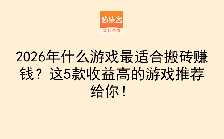 2026年什么游戏最适合搬砖赚钱?这5款收益高的游戏推荐给你!