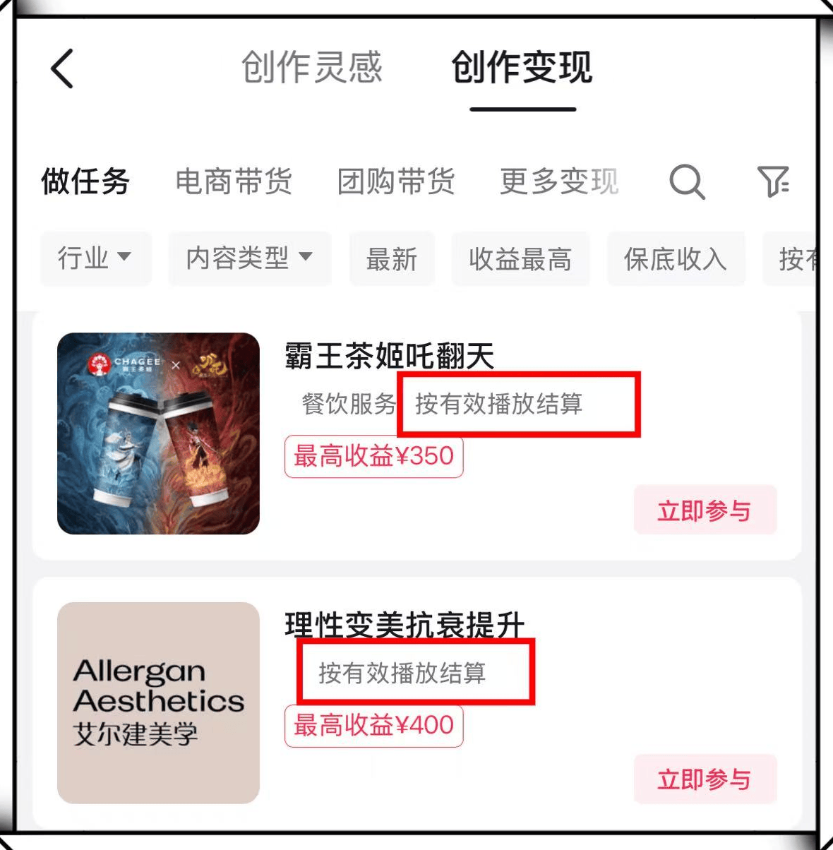 平台会发布各种主题清晰的拍摄任务(比如特定话题参与、特效挑战、商品推广等),你只需要按照要求拍摄视频并发布,达到平台的标准(如播放量、点赞评论互动量),就能拿到现金奖励。