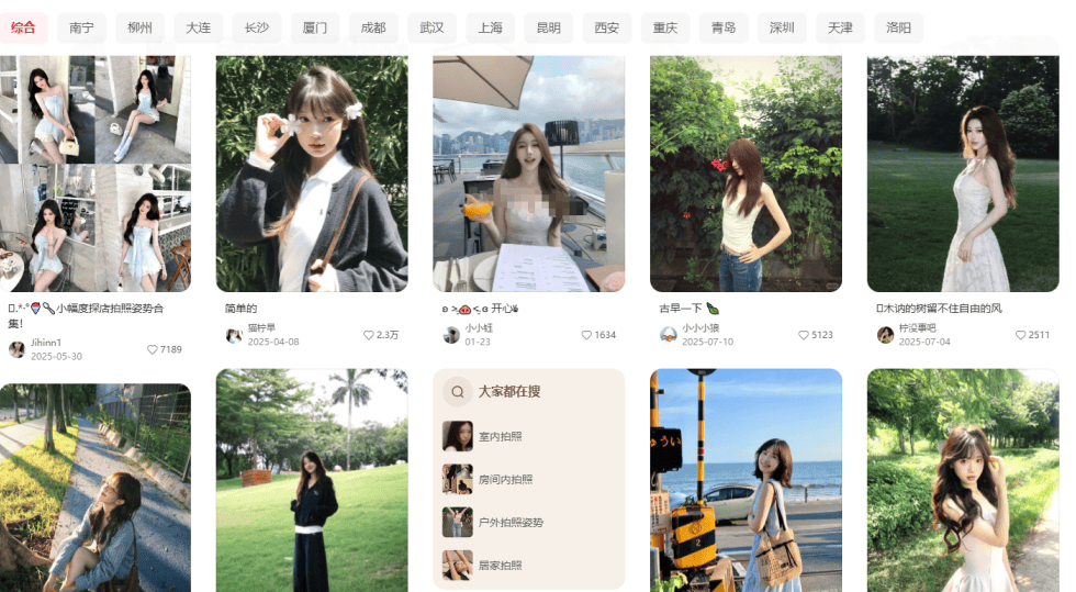 首先是找图,这一步非常简单,直接去小红书或者抖音搜「拍照」相关关键词就可以。