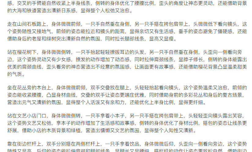 比如怎么摆姿势、怎么找好看的上镜角度这类内容。