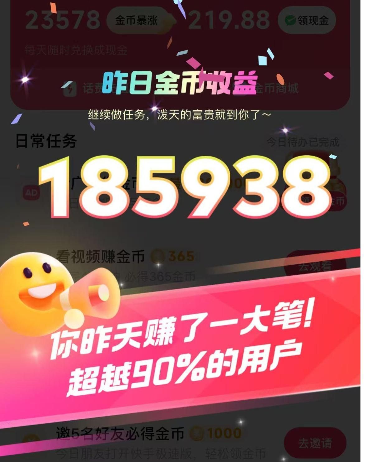 快手极速版作为快手旗下的轻量化App,其赚钱渠道主要由做任务攒金币和App拉新组成。