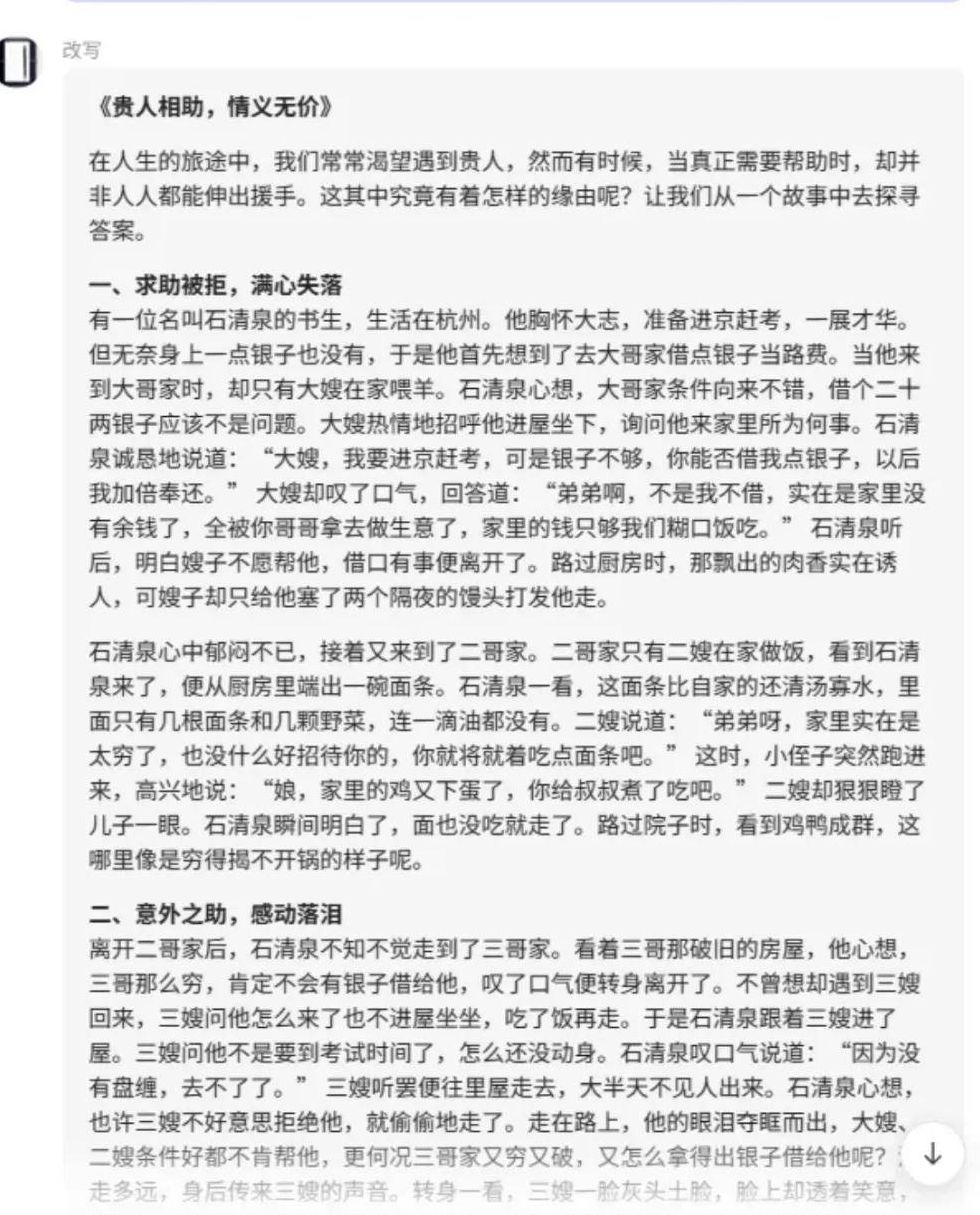 你只需要在工具里搜索“改写”功能,选择对应的AI生成选项,就能得到一份生动形象的全新文案。