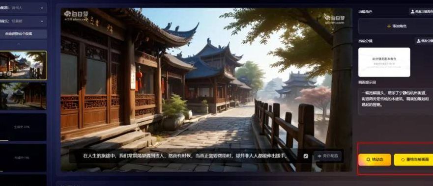 接着,按照软件的提示设置角色形象、选择合适的分镜,并且详细描述每个场景的布局和人物的具体动作。