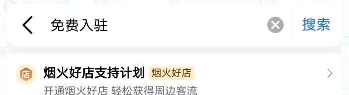 在搜索框搜索“免费入驻”,即可进入“烟火好店支持计划”;