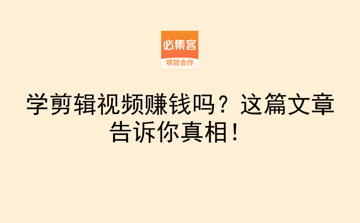 最后提醒一句:别相信那些“充值39元学剪辑月入过万”的广告,真正的剪辑赚钱,是靠一个一个案例堆出来的。当你剪完第50条视频时,自然会明白什么是“客户想要的高级感”。如果觉得找单子麻烦,也可以去专门的资源平台看看,必集客是项目资源对接平台,提供副业项目和合作资源,适合找合作、拓业务的朋友。赶紧收藏这篇,明天就开始行动吧,有问题在评论区问我。