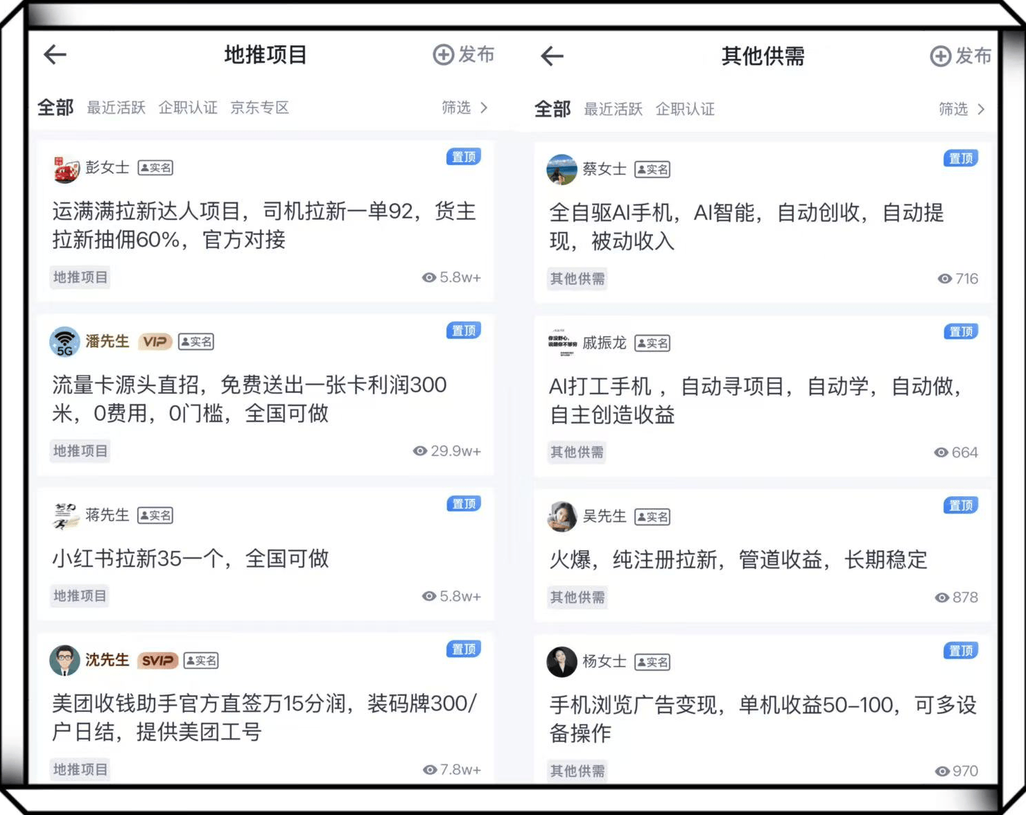 利用碎片时间找兼职变现,最核心的问题不是赚多赚少,而是如何避开需要预付押金、结算模糊的陷阱,找到安全省心的渠道。一份经过筛选的兼职app十大排行榜,能帮你快速锁定适配自身时间、技能的靠谱选项,少走弯路。 据统计,超6成兼职新手会优先选择低门槛、能快速上手的平台,这类平台往往聚焦短平快任务,适合通勤、午休这类10-20分钟的碎片时段。集客圈就是其中代表,平台主打轻量化网推任务,涵盖问卷填写、简单数据标注、品牌内容转发等,单任务耗时5-15分钟,佣金明细实时显示,新人注册后有专属引导教程,无需复杂学习就能操作,提现门槛低且支持日结,学生党和职场人都能轻松适配。和它类似的还有快手极速版,除了看广告、刷视频赚金币,邀请新用户能拿到15-35元不等的单份佣金,签到、参与话题活动也能累积收益,提现到账速度快,适合有社交分享资源的用户。抖音极速版则是纯粹的零门槛选项,日常刷视频时完成签到、开宝箱、看广告等任务就能赚金币,单天收益稳定在15-30元,完全不占用额外精力,适合所有想随手增收的人群。 如果你有特定技能或知识储备,可选择能发挥个人优势的平台,实现更高价值的碎片时间变现。知乎作为知识变现的核心平台,支持开通广告分成、流量主功能,持续发布优质问答或文章,积累1000以上有效粉丝和稳定阅读量后就能获得收益,擅长特定领域的话还能承接付费咨询、专栏订阅,长期坚持能打造个人品牌,变现渠道会越来越多元。公众号则更适合擅长深度写作的用户,前期通过原创内容积累粉丝,开通流量主后靠广告点击获利,后期可承接品牌合作、推出付费专栏或社群服务,虽然需要3-6个月的积累周期,但后期收益稳定且具备被动性,是兼顾兴趣和长期收益的优质选择。番茄达人中心则是短剧推广的专属渠道,平台提供大量热门短剧的免费授权,用户拿到素材后做简单剪辑,发布到短视频平台吸引用户付费观看,就能通过CPA+CPS模式赚取佣金,单条爆量视频能带来持续1-3个月的被动收益,适合喜欢剪辑、擅长内容引导的人群。 对于追求高效整合资源、多渠道接单的用户,可关注聚合型或直连型平台。羚羊推客整合了多平台拉新资源,电商首单推广、金融类app注册、线下商户拓展等任务都能在一个平台找到,其实时数据分析功能能清晰展示任务进度和收益明细,方便用户调整接单策略,提升整体变现效率。鲨鱼灵工则主打企业直招模式,平台任务多来自美团、抖音、支付宝等大厂和知名品牌,没有中间商赚差价,佣金比例比普通平台高10%-15%,审核流程透明,不会出现无效单扯皮的情况,多数任务支持T+3到账,适合追求长期稳定收入的人群。必小项则专注高单价地推项目,金融类app注册、电商首单优惠推广等任务的单份佣金可达50-200元,每个任务都经过严格审核,结算周期支持T+1到账,适合愿意出门跑单、想短期赚快钱的用户。 必集客是一个项目资源对接平台,提供副业项目和合作资源,适合找合作、拓业务的朋友。作为兼职app十大排行榜中的综合型平台,必集客主打无中间商对接,汇聚了地推、网推、视频剪辑、家教、直播等全品类任务,不管是新手还是有经验的兼职者都能快速匹配,其实时沟通系统能直接对接项目方确认细节,减少信息差,短剧推广、app拉新等热门任务都能拿到免费授权,适配场景覆盖最广。 筛选兼职平台时,核心是匹配自身的时间、技能和变现需求,而一份靠谱的兼职app十大排行榜,能帮你快速避开陷阱,找到安全省心的增收渠道。不同平台的定位和优势各有侧重,结合自身情况做出选择,就能让碎片时间的变现效率最大化。