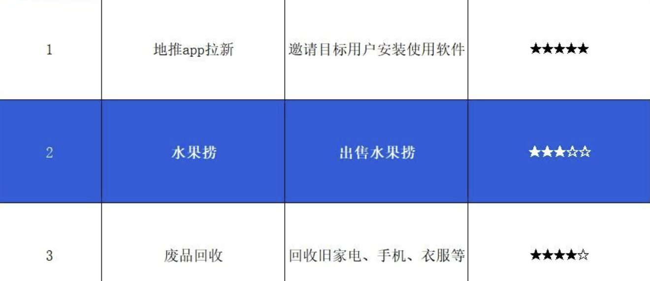 世人皆说赚钱难,却总想着在保住“面子”的前提下赚取收益。很多人宁愿守着微薄的薪资,拿着零星的收入,时不时抱怨几句,也不愿尝试那些看似“丢面子”、实则利润可观的小生意。在经济形势日渐严峻的当下,打工者怕失业,创业者怕亏本,就连送外卖都成了众人争抢的“香饽饽”,甚至到了“头破血流”的地步。但在这样的背景下,我却发现三个只需一辆三轮车就能起步的小生意,正迸发着勃勃生机。做好了甚至能月入过万,更重要的是,它们比送外卖更轻松。1:地推app拉新大家都知道,移动互联网时代,各类APP应用软件堪称“泛滥”的产品。对应用软件方而言,想要让自己的产品在市场中脱颖而出,适当的营销推广必不可少。地推APP拉新作为能有效扩大用户群体基数、提升平台活跃度的手段,无疑也因此受到不少应用方的青睐。因此地推APP拉新的市场需求量并不少,更关键的是,它门槛低、操作简单,即便是新手小白也能轻松上手。据必集客、集客圈等拉新推广一手接单平台显示,每成功邀请一名新用户安装使用指定APP,即可获得30-50元的佣金收益。大多是一单一结或日结,收益全凭个人努力——若能日邀20名新用户,单日收益便有机会破千!当然,日入过千固然属于少数情况,但每天赚300元以上还是轻松实现的。一辆三轮车,拉上准备好的3-5元小礼品,去大型商超、小区、公园等人流密集的地方设个临时推广点,何乐而不为呢?2:水果捞别说,你还真别说,水果捞确实能吸引大量消费人群。试想一下,挑选喜爱的水果,再加入酸奶、椰奶、蜂蜜或炼乳,那滋味真是让人欲罢不能!出摊前提前在家备好当季水果、酸奶、椰奶等所需食材,尤其到了夏天,傍晚三四点就能出摊,去夜市、学校门口、公园或地铁站等地等候顾客。下班、放学时分,无论是上班族还是学生党,经过一天的忙碌后都需要美食抚慰,水果捞恰好满足了大家的口腹之欲,男女老少都爱吃。最重要的是,水果捞利润率能达到60%-70%,一天赚300元以上很容易。3:废品回收提到废品回收,很多人都会连连摆手,觉得这是“没面子”的行当。但只要你不怕丢面子、愿意尝试,它带来的回报定会超乎想象!不过要注意,废品回收别再局限于纸板、瓶瓶罐罐这类小件。真正有经验、有眼光的人,早已开始回收旧家电、旧手机和旧衣服了。投入小,一辆三轮车就能起步做废品回收,通过差价转卖,利润可达30%以上。尤其掌握分拣技术、对接一手渠道后,利润更是不可估量!以上便是本篇文章为大家盘点的3个小生意——只要不怕丢面子,搞辆三轮车就能干,不仅比送外卖轻松,做好了甚至能月入过万。希望能给大家带来一些帮助与启发。