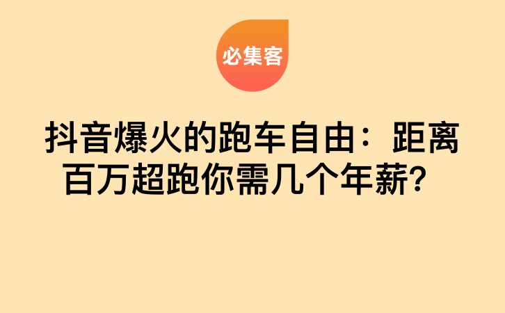 抖音跑车年薪必集客小Z 2025-08-23 00:18:54