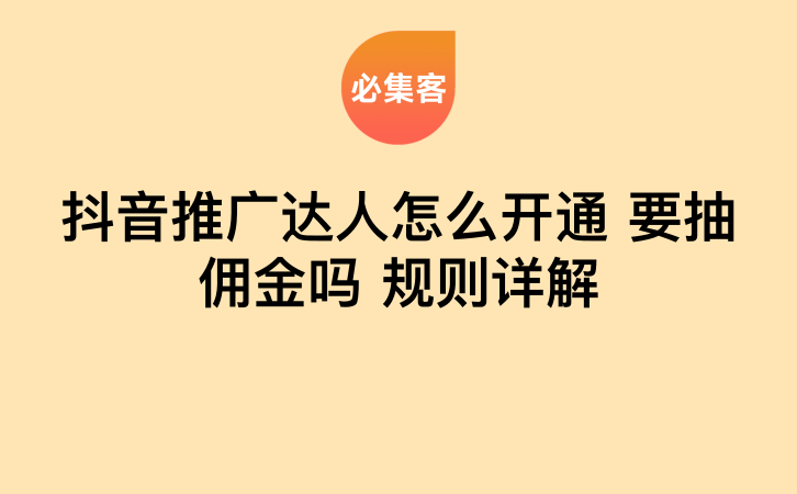 抖音推广达人怎么开通 要抽佣金吗 规则详解
