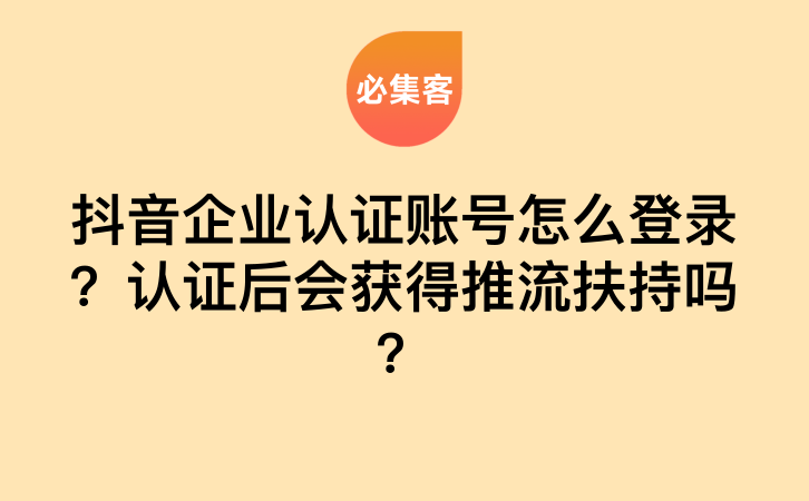 抖音企业认证账号怎么登录?认证后会获得推流扶持吗?