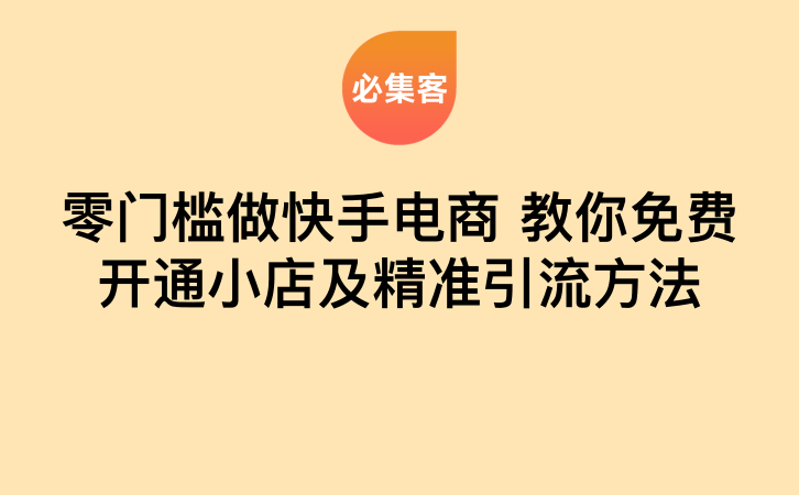 做快手电商 教你免费开通小店及精准引流方法