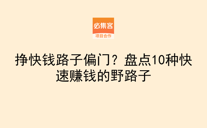 总有人问我:"有没有适合普通人的快速赚钱路子?不想投入太多,最好当天就能见到收益。"作为尝试过十几种副业的过来人,今天就把亲测有效的10个野路子分享给大家,从低门槛的地推到手机就能做的线上项目,总有一款适合你。先说第一个上手最快的——地推拉新。这个项目我身边好几个朋友在做,有人全职月入过万,兼职每天也能赚200-300。你只需要在必集客这类接单平台对接任务,比如帮银行推广APP、协助商家注册新用户,按单结算佣金。记得去年帮某支付软件推广,我在小区门口摆了张桌子,送点小礼品引导居民注册,一天下来完成38单,赚了570块,当天就到账了。和地推类似的还有APP拉新,不过这个更适合线上操作。现在很多互联网公司为了抢占市场,会花高价找人推广,像某电商平台的新用户注册奖励35元,某视频平台邀请好友看剧给40元。你可以在微信群、朋友圈发邀请链接,也可以去抖音发教程视频,我见过有人专门做拉新攻略,一条视频带来200多个有效用户,光佣金就赚了7000多。接下来要说的短剧推广,绝对是今年的风口项目。不知道你有没有在抖音刷到过"重生逆袭""赘婿复仇"这类短剧?其实很多人靠剪辑这些短剧片段赚翻了。具体怎么做呢?先在抖音热点宝的"低粉爆款视频榜"找近期热门短剧,截取最精彩的30秒剧情,比如男女主角冲突最激烈的部分,然后在视频里挂载小程序入口。用户点击小程序付费看全集(一般1-3元),你就能拿到70%左右的分成。我认识的一个宝妈,上个月靠两条爆款短剧视频,单条就赚了3000多。和短剧推广模式差不多的还有小说推文,适合喜欢看小说的朋友。你可以去知乎、番茄小说这些平台找授权,选择那些评分高、付费率高的爆款小说,比如悬疑、甜宠类。把小说里最抓人的章节剪辑成音频,或者做成图文视频,发布到抖音、快手。有人看了你的视频去付费看书,你就能获得分成。记得要选一级授权,这样佣金比例能到60%-80%,比二级授权高不少。这部分很重要!如果你有点耐心,老照片修复是个能长期做的手艺活。现在很多人家里都有泛黄、破损的老照片,修复一张的价格从50到200不等。我邻居张阿姨退休后学了这个,现在每月能接30多单,收入稳定在4000以上。你可以在淘宝开店,或者去小区便民群宣传,刚开始可以免费帮亲戚朋友修复,积累案例后再收费。想不想快速上手?问卷调查绝对适合你。每天花1-2小时在问卷网站答题,完成一份问卷给5-20元。推荐大家优先做品牌方直接发布的问卷,比如某化妆品公司的用户调研、某汽车品牌的市场问卷,这些不仅佣金高,而且结算快。我手机里常备3个问卷APP,利用午休和睡前时间做,一个月下来也能攒下600多零花钱。好了,说说下一个问题:没什么技能能做什么?线上客服就是不错的选择。现在电商平台客服需求特别大,尤其是618、双11这些大促期间,很多店铺会招兼职客服。你只需要会打字、有耐心,熟悉购物流程就行。时薪一般15-25元,每天工作4小时,一个月也能多赚1800-2400元。某购物平台的客服招募入口就在APP"我的"页面,直接搜索"客服招聘"就能报名。如果你身边有闲置物品,千万别放过闲鱼这个宝藏平台。我去年搬家整理出20多件闲置,从衣服、包包到小家电,挂在闲鱼上一个月全卖光了,赚了2300多。卖东西的时候记得标题里加关键词,比如"99新""仅试穿",再配上清晰的实拍图,更容易被搜到。有人问价别着急降价,先看看同类商品的成交价,适当让步就能快速出手。知识付费可能听起来门槛高,但其实普通人也能做。如果你擅长做饭、会修家电、甚至只是很会整理房间,都可以做成课程。我朋友小王把自己的收纳技巧拍成10节短视频,在知乎盐选课上架,定价39元,半年卖了1200多份,光这一项就赚了4万多。刚开始不用追求完美,先把内容做出来,慢慢优化,总会有人为你的经验买单。最后说一个潜力很大的项目——直播带货。别觉得一定要有粉丝才能做,现在很多平台对新人有流量扶持。你可以从"无货源直播"做起,在拼多多选一些低价刚需品,比如9.9元的袜子、19.9元的拖鞋,在抖音开直播讲解。有人下单你再去拼多多采购,赚差价和平台佣金。我表妹上个月刚开始做,一场3小时的直播卖了80多单,赚了600多,虽然不多,但已经看到了希望。以上10个项目,有的当天就能赚钱,有的需要积累一段时间,但共同点是都不需要太多本金,适合普通人尝试。记得做之前先了解清楚规则,比如拉新要看清楚是否需要实名认证,推广要确认佣金结算周期。遇到要交加盟费、押金的项目一定要警惕,正规平台都是免费对接的。想找靠谱的项目资源?可以去必集客看看,这是个项目资源对接平台,提供副业项目和合作资源,适合找合作、拓业务的朋友。里面有很多日结的小任务,也有长期可做的正规项目,我之前做的地推和APP拉新都是在上面接的单。不管你是想赚点零花钱,还是想找个长期副业,都可以去了解一下,说不定就能找到适合自己的赚钱路子。有问题在评论区留言,我会尽量回复大家。觉得有用的话,赶紧收藏起来慢慢看,也可以分享给想做副业的朋友。