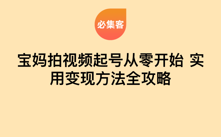 宝妈拍视频起号从零开始 实用变现方法全攻略