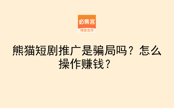 熊猫短剧推广是骗局吗?怎么操作赚钱?