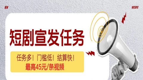 短剧宣发达人扩招 任务多门槛低 最高45元/条视频 剪辑达人招募中