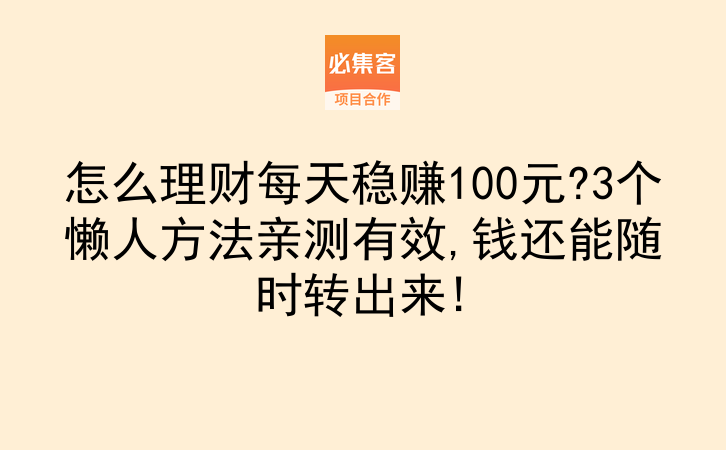 怎么理财每天稳赚100元?3个懒人方法亲测有效,钱还能随时转出来!