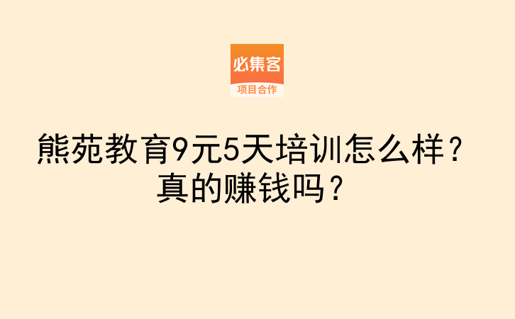 熊苑教育9元5天培训怎么样?真的赚钱吗?