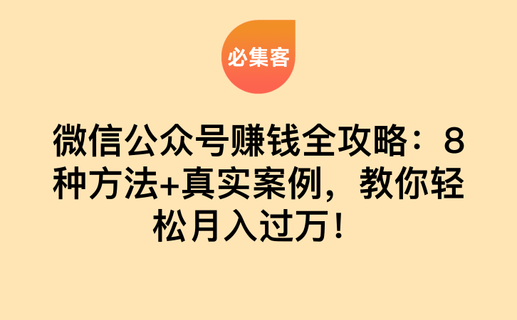 微信公众号赚钱全攻略:8种方法+真实案例,教你轻松月入过万!